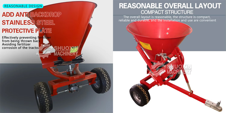 Egitura konikoen diseinuarekin eta zapatilak zapalduarekin, modu eraginkorrean kudeatu ditzakete material mota desberdinak, hala nola ongarri granularrak, ongarri organikoak eta simaurra. Agintarien agenteak ere hedatu ditzake. Deskargatzeko birrintzeko eta leuntasunaren uniformetasuna egokiak dira hainbat ongarrien ezaugarrietarako. Ongarri-isurketarako portu erregulagarriekin eta disko zabaltzeko abiadura birsortzearekin konbinatuta, partikulen tamaina eta hezetasun eduki desberdinetako materialekin bateragarritasuna areagotzen du.