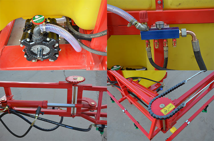 Esekidura-sistema:-AMuntatutako Nekazaritza SprayerHiru puntuko konexio metodoa hartzen du, hainbat zaldi-traktoreetarako egokia. Instalazioa erosoa da eta egonkortasuna altua da.