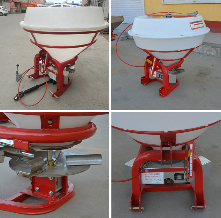 Spraying eta hedatzeko mekanismoa: abiadura handiko ongarriaren zabalkundea zabaltzen duen diskoa arku itxurako palak ditu, indar zentrifugoa erabiliz ongarria 12-24 metroko zabalera zabaltzeko,% 90eko uniformetasuna zabaltzen duena.