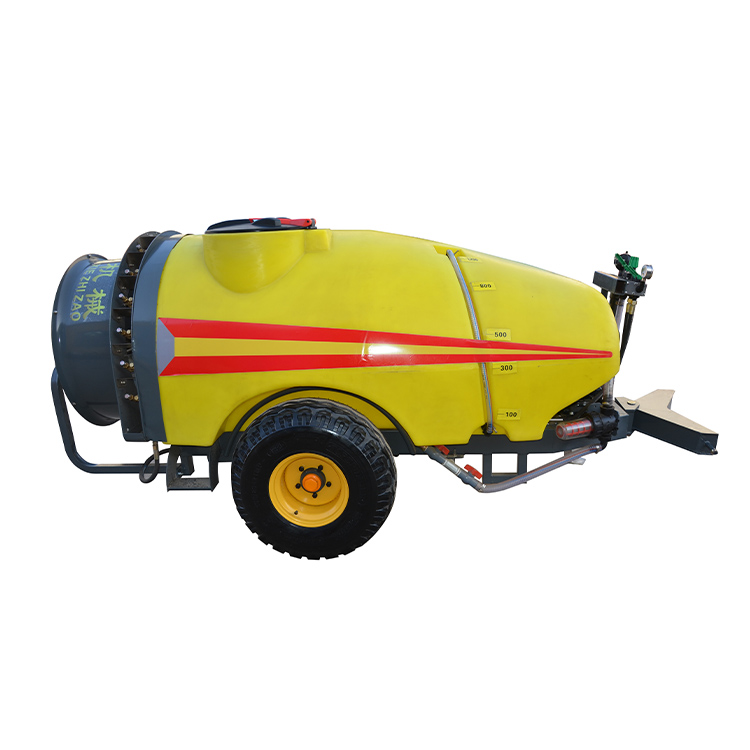 Traktore-laino-hazgailu-ihinztagailuek marko berdea eta edukiera handiko depositu horia dituzte, eta kolore-kontraste nabarmena sortzen dute eremua erraz identifikatu eta mantentzeko. Ekipamendu honen aurrealdeko atalak diametro handiko haizagailu axial bat dauka, sare babesgarri metalikoko estalkia duena, aire indartsua sortzen duen pala anitzeko diseinua duena. Atzeko atala forma angeluzuzena duen PE materialaren depositu horiz osatuta dago, goiko aldean betetzeko ataka bat eta alboan behaketa-leihoa edo mantentze-estoilada dituena. Erdiko eta beheko zatiak presio handiko ponpekin, kanalizazio-sistemekin, kontrol-balbulen taldeekin eta iragazketa-gailuekin integratuta daude, hodiaren diseinu argiarekin errazago. Tractor Mist Blower Sprayers unitate osoa ihinztatutako herdoilaren aurkako marko berde batek eusten du, behealdean zintzilik dagoen instalazio-euskarri batekin, traktorearen hiru puntuko esekidura-sistemara zuzenean instalatu daitekeen instalazio segurua lortzeko.
